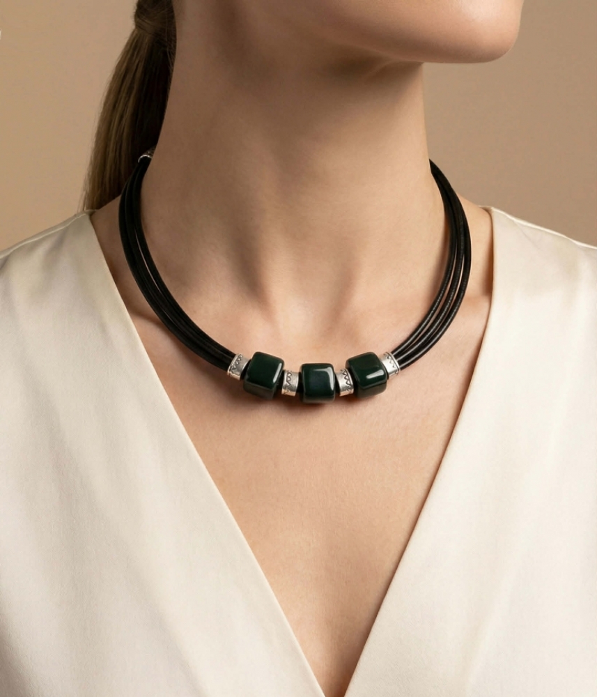 Дамско колие Cubic с наситени керамични кубчета.