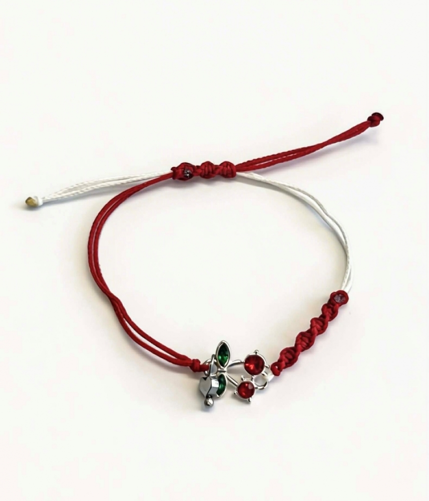 Мартеница с черешка – стилен и символичен аксесоар за 1 март. Ръчно изработена мартеница в бяло и червено, символ на здраве, късмет и ново начало. Подходяща за подарък и пролетна визия.