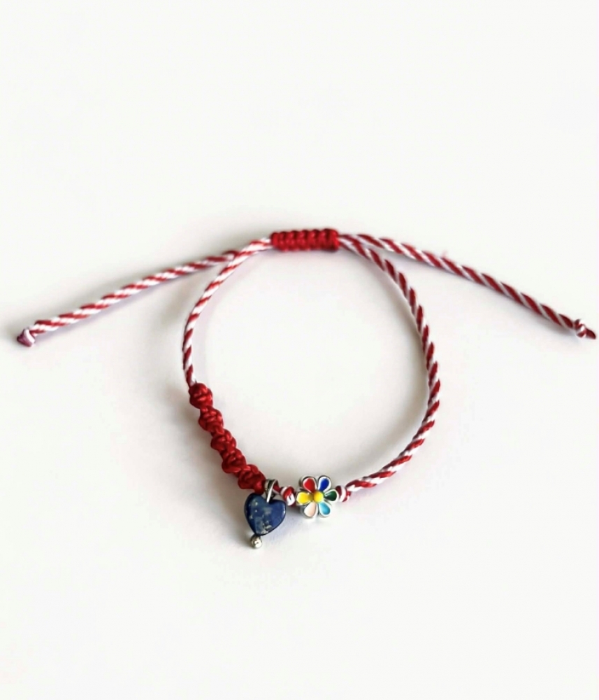 Тази мартеница плетка е подходяща за жени, момичета и деца и е чудесен подарък за Баба Марта. Лека, удобна и с регулируем размер, тя може да се носи както самостоятелно, така и в комбинация с други гривни.