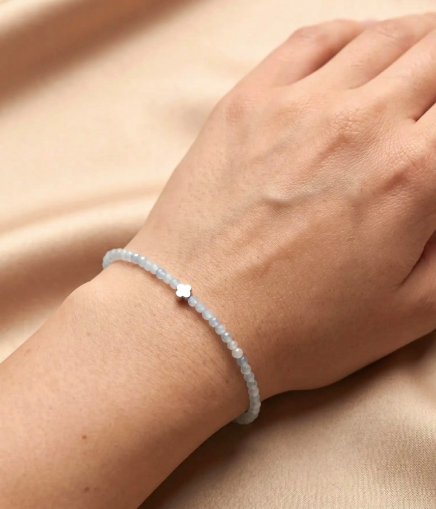 Аквамаринът е символ на спокойствие, хармония и вътрешен баланс, а хематитът се свързва със стабилност и сила. Комбинацията от тези два елемента прави гривната не само красив аксесоар, но и бижу с послание.