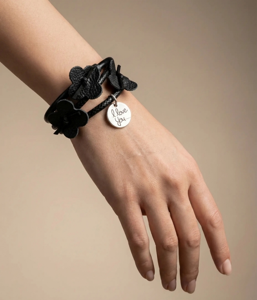 Дамска гривна Love с кожени елементи.