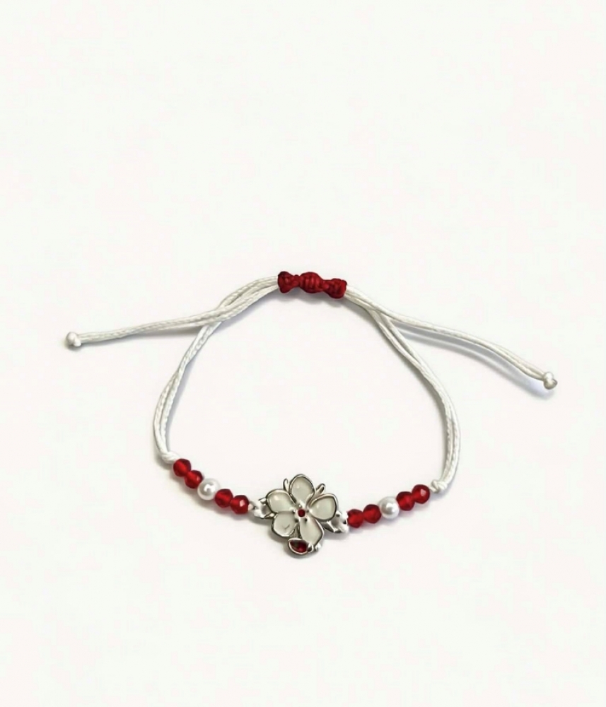 Тази мартеница гривна с цвете е подходяща за жени, деца и момичета и е чудесен подарък за 1 март. Лекият и удобен дизайн позволява ежедневно носене през целия месец март.