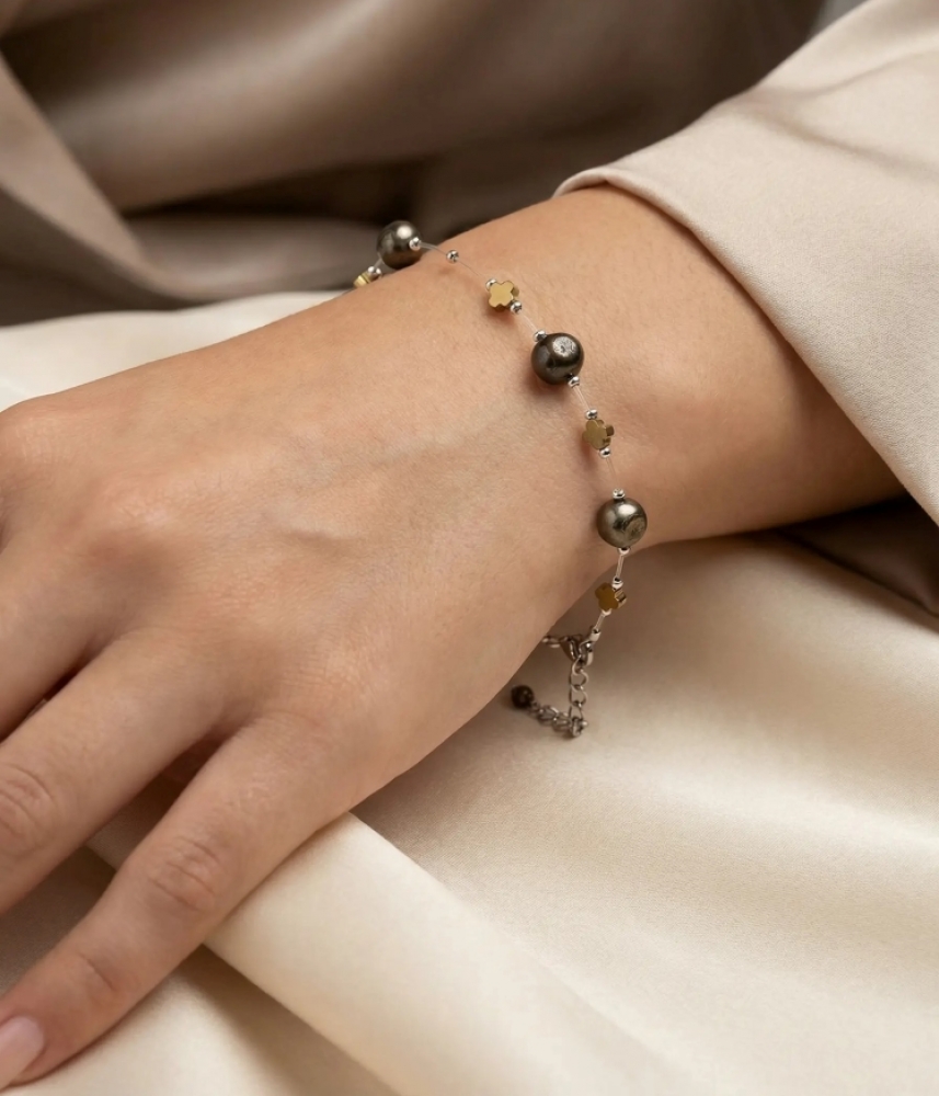 Добавете изтънчен чар към визията си с гривната Fortuna, ръчно изработена от естествени перли и хематит. Комбинацията от нежния блясък на перлите и елегантната дълбочина на хематита създава хармоничен баланс между женственост и сила.